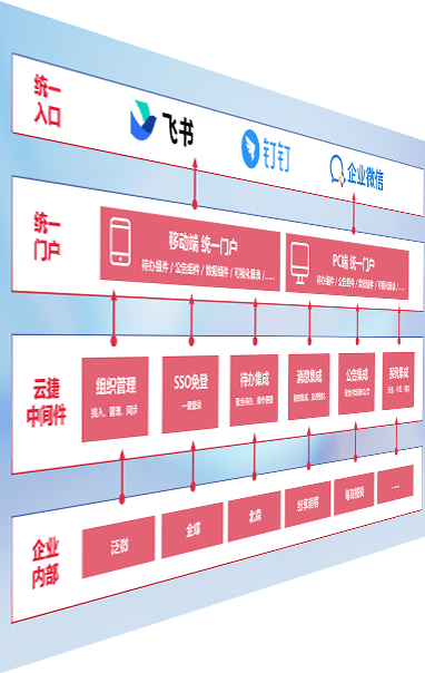 对协作平台提供支持服务,,,,支持企业应用与协作平台对接,,,包含组织同步、、、消息集成、、、待办集成等。。支持目前主流的协作平台:钉钉、、、企微和飞书。。。